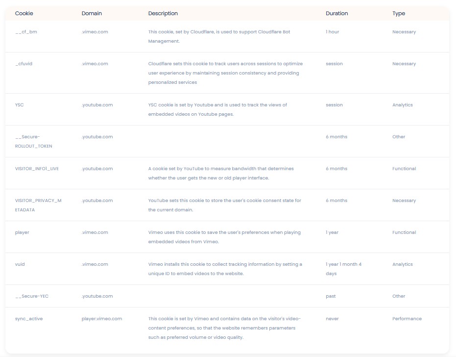 - Cookies de redes sociales externas: se utilizan para que los visitantes puedan interactuar con el contenido de diferentes plataformas sociales (Facebook, YouTube, Twitter, LinkedIn, Instagram, Pinterest, etc.) y que se generen únicamente para los usuarios de dichas redes sociales. Las condiciones de uso de estas cookies y la información recopilada se regulan por la Política de Privacidad de la plataforma correspondiente.